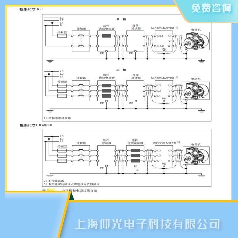 3. 框架尺寸為 A~F的 MM440變頻器只能采用 B型 ELCB。設備由三相電源供電,并裝有 EMC